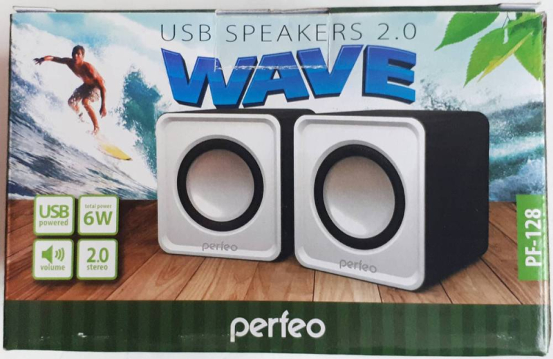 Колонки PERFEO PF-128W(5129) Wave, 2x3W, USB, белые