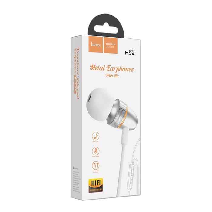 Наушники HOCO M59, внутриканальные, с микрофоном, серебро