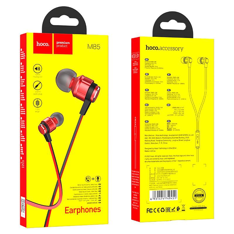 Наушники HOCO M85, внутриканальные, с микрофоном, красные