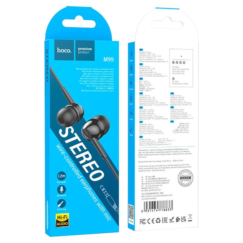 Наушники HOCO M99, внутриканальные, с микрофоном, чёрные
