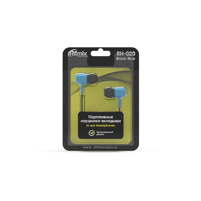 Наушники RITMIX RH-020 внутриканальные, чёрно-синие