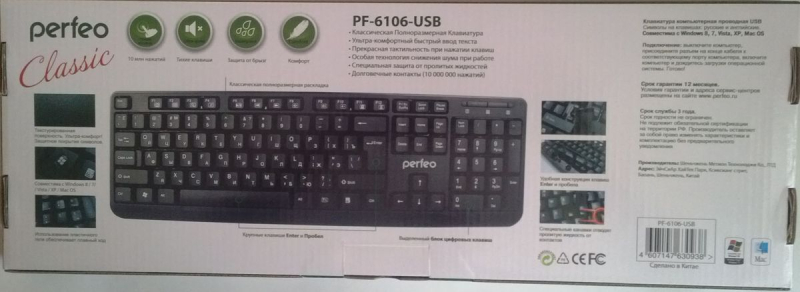 Клавиатура PERFEO PF-6106(3093) Classic,USB, чёрная