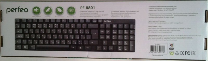 Бренд Perfeo Тип подключения Проводное Интерфейс подключения USB Дизайн клавиатуры Классическая Игровая клавиатура Нет Подсветка Нет Доп. клавиши Нет Цвет основной Чёрный -
