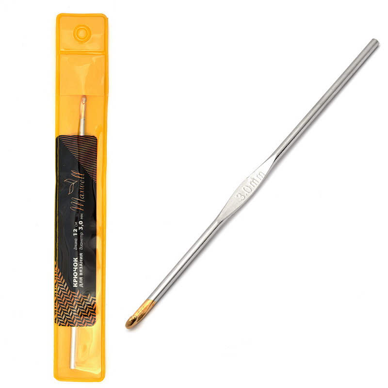 Крючок для вязания Maxwell 3,0мм, 12 см, никель, с золотой головкой MAXW7283